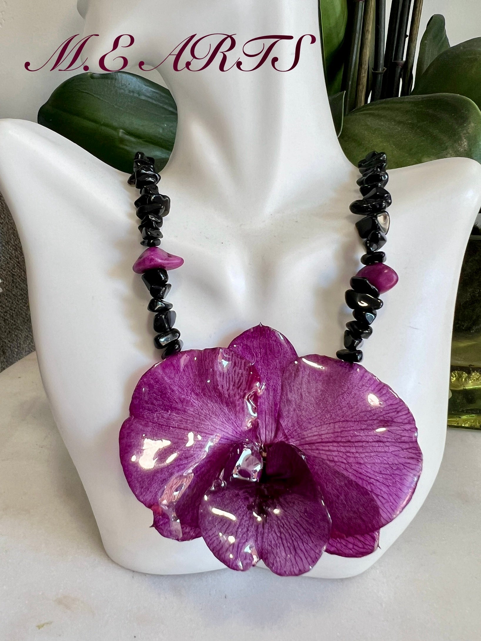 Violet Orchid & Obsidians Stones